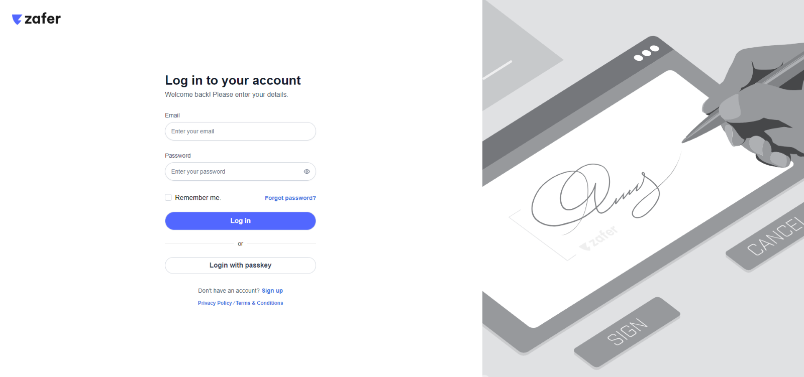 Enter the URL https://www.zafer.ai/ and navigate to the Zafer login page.